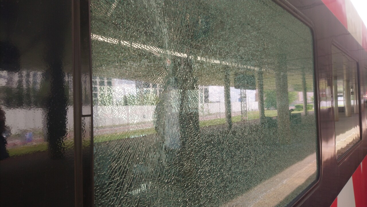 Похоже на пневматику, стреляли снаружи (ссыкливо опасаясь видеонаблюдения внутри поезда, ведь если разбили изнутри, по лицам и биометрии найдут шакальё трусливое подлое это).