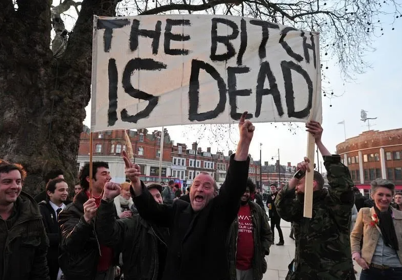По сообщениям газет, смерть Тэтчер была отмечена подобными манифестациями аж в ДВУХ провинциальных городах, в обшей сложности в них приняло участие человек 500...