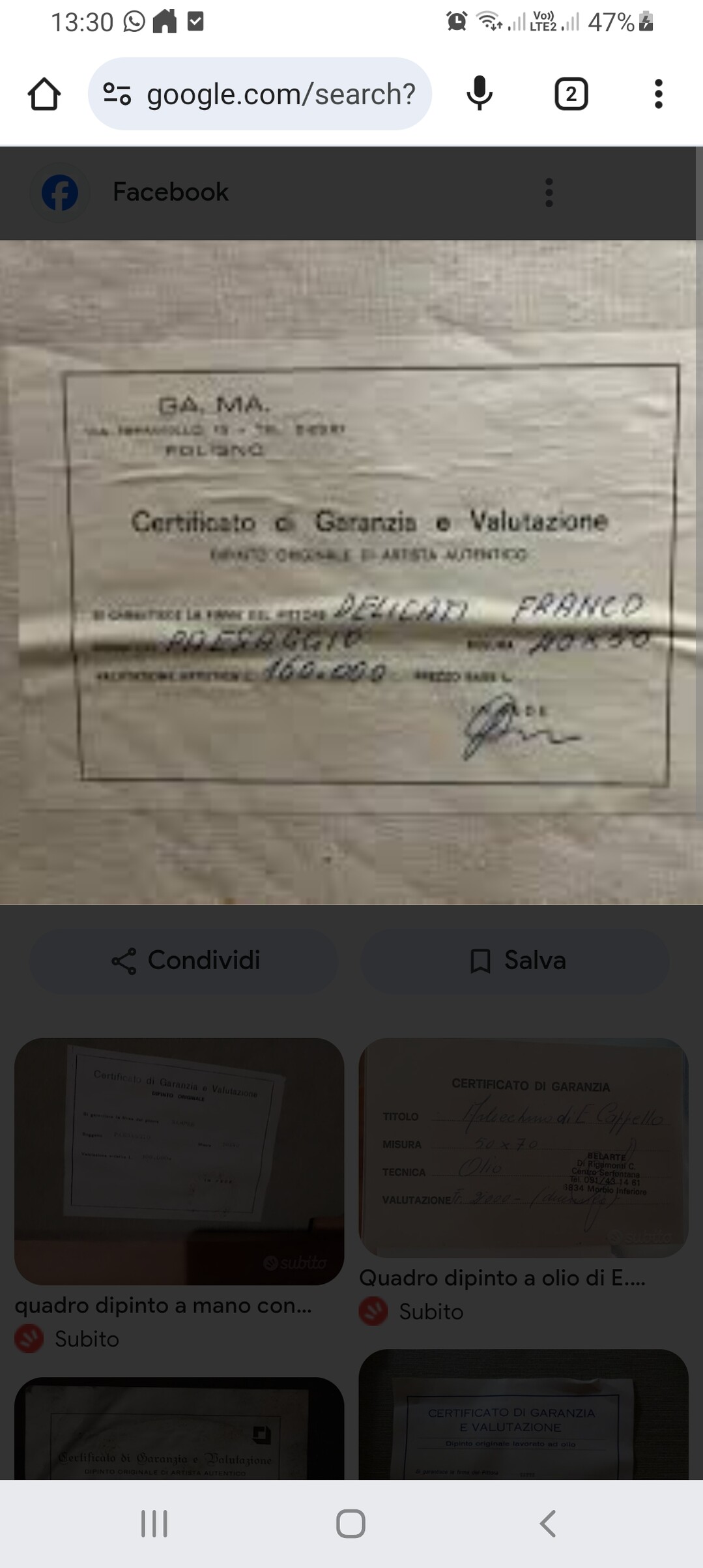 Примерно такая этикетка была. Эта картина вообще 160.000 стоит. Увы, по прежнему лир. Прим 80 евро