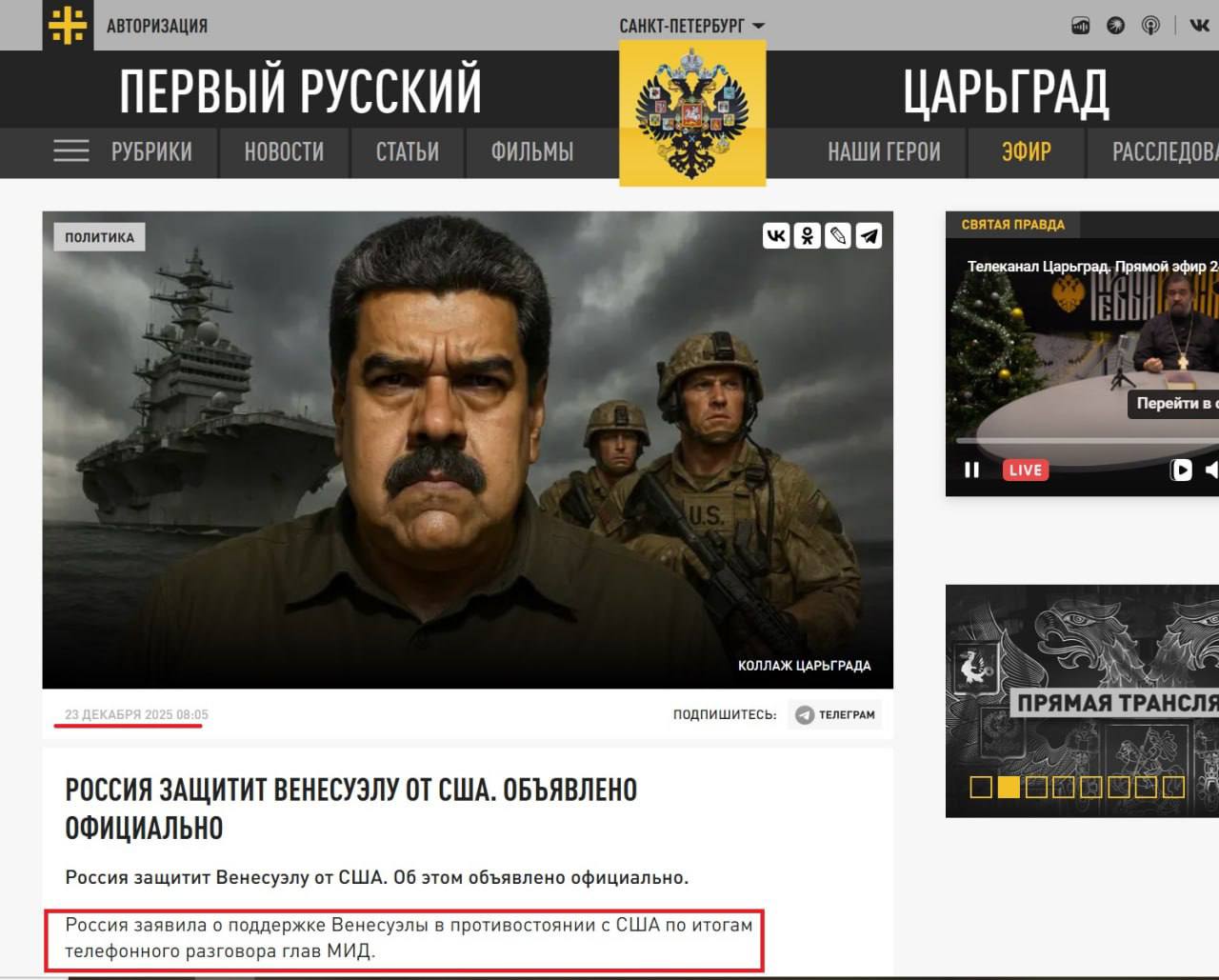Пока что Венесуэла не повержена США. Лишь выкрали президента. Это пиратство или терроризм, но не война. Видимо, поддержка Россией существует.