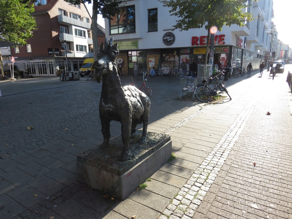 И вот как-то в Германии приехал в славный городок Бремен, известный на весь мир своими животными-музыкантами. Оставил мотоцикл просто на какой-то улице и пошёл гулять по центру. А хорошенько погуляв (и отметившись у знаменитого музыкального квартета), я вдруг осознаю, что совершенно не помню, на какой именно улице находится мой мотоцикл. К счастью, обычно я сразу везде начинаю всё вокруг фотографировать, поэтому первым делом стал просматривать фотографии в надежде найти название улицы или приметную точку поблизости. И нашёл... козла! Да, там действительно был памятник козлу! Дальше осталось через гугл-транслейт выяснить как пишется козёл по-немецки, а затем через навигатор, найдя этого Ziegel на карте города, проложить к нему пеший маршрут.