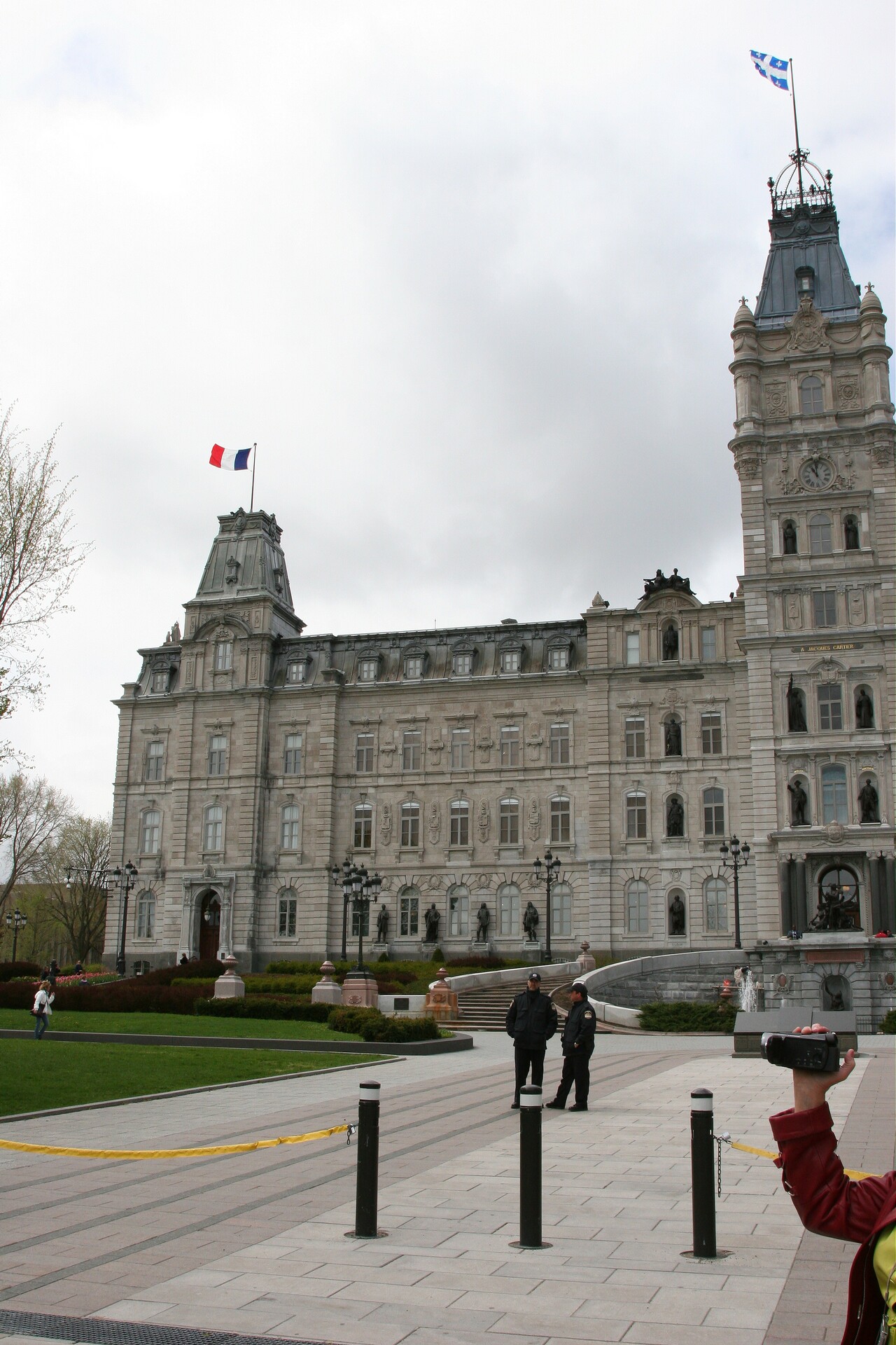 Здание правительства Квебека. Флага Канады там нет. Франция и Квебек - белые лилии на синем фоне.