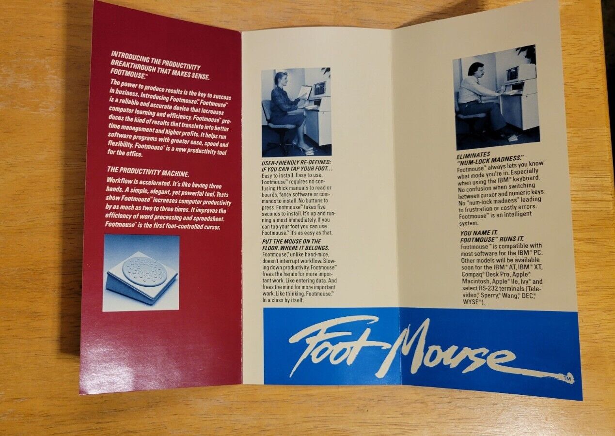 Это моя идея! 25 лет назад я думал как сделать мышу для ноги и педали для регистров. Кроме того, 25 лет назад компьютер всегда стоял на столе и кабель для монитора был меньше чем полметра, по другому не поставишь. Это была моя идея разрезать дорогой заграничный кабель, удлинить и поставить компьютер на пол. Потом уже производители компьютеров додумались делать кабель нормальной длины.
