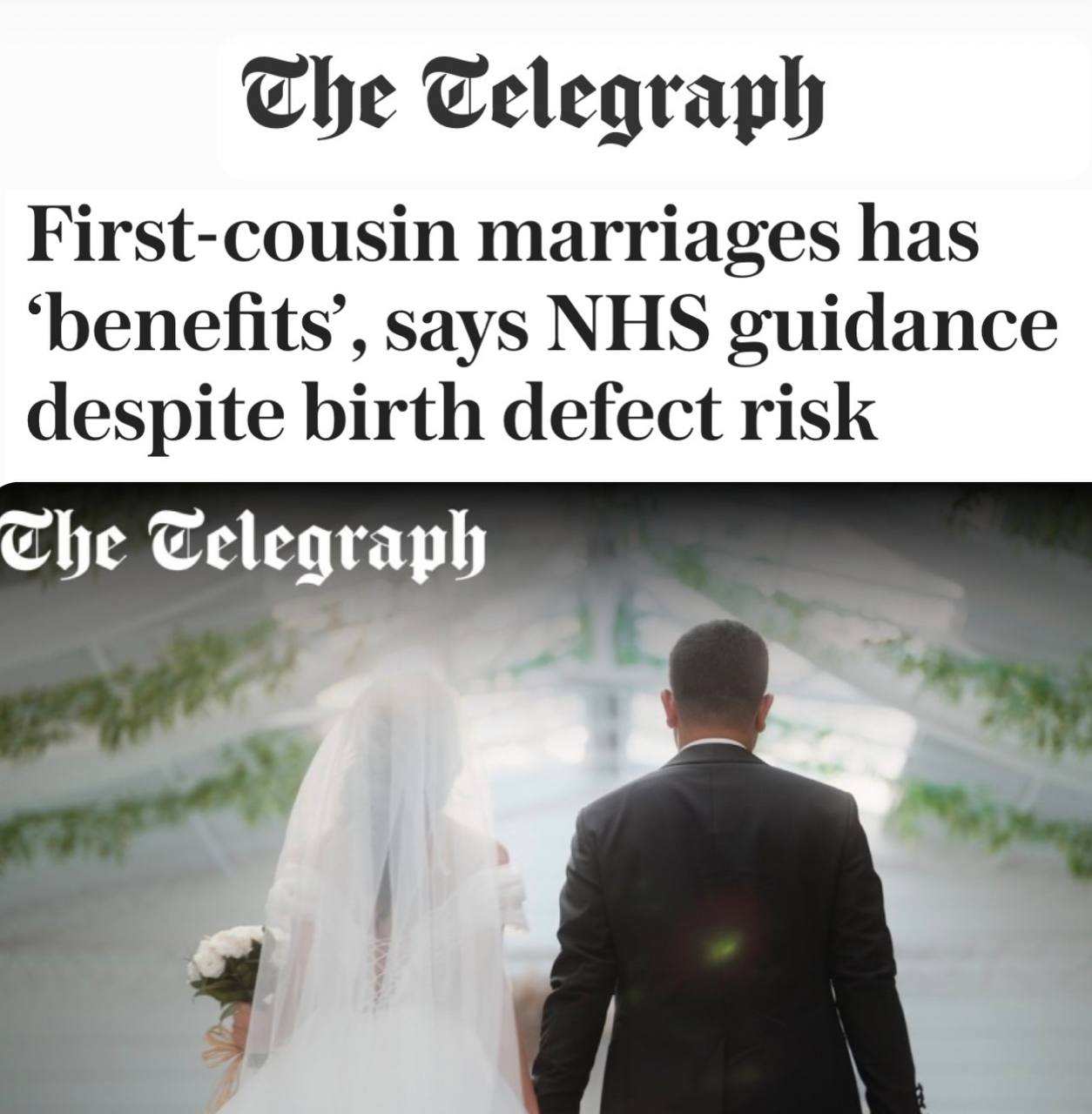 «Браки между двоюродными братьями и сёстрами имеют «преимущества», утверждает руководство NHS, несмотря на риск врождённых дефектов»: В Британии разгорелся скандал вокруг браков между родственниками.