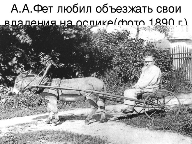 Афанасий Фет назвал своего осла Некрасовым в шутку, в честь поэта Николая Некрасова Отношения между Фетом и Некрасовым были сложными: Некрасов, как издатель «Современника», печатал стихи Фета на страницах журнала и давал высокую оценку его творчеству, но в 1860-е годы всё резко изменилось: Фет покончил с «Современником», а Некрасов отнёс Фета к «второстепенным поэтам». Про поэтов говорили, что оба — «непримиримые упрямцы». Возможно, из-за упрямства оппонента Фет для своей шутки и выбрал осла. Фет не только объезжал свои угодья на Некрасове, но и наказал всех последующих ослов — отпрысков своего питомца — нарекать Некрасовыми.