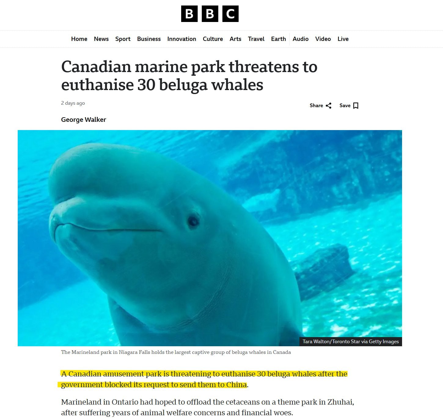Короче белух надо куда-то девать, а некуда - индустрия парков развлечений в Северной Америке, мягко говоря, катится в профессиональную сферу ответственности гинекологини Урсулы фон дер Liar. Ну ОК, кинули клич по миру, китайцы согласились забрать.