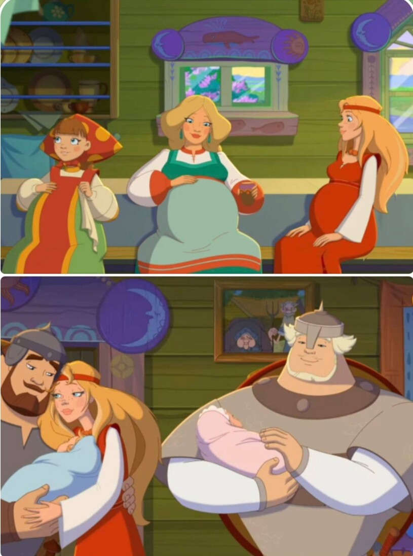 Однако - госзаказ на демографию... В новой части франшизы «Три богатыря» жены всех главных героев забеременели Это следует из трейлера, опубликованного в преддверии премьеры. Судя по внешним признакам, зачатие произошло одновременно. В конце трейлера показано, что роды у всех трех женщин прошли успешно.